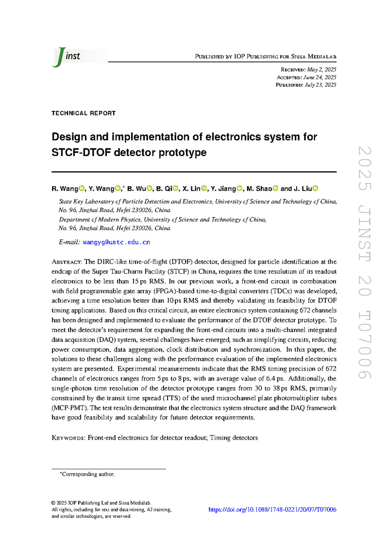 祝贺王然师兄的最新论文在期刊JOURNAL OF INSTRUMENTATION上正式发表